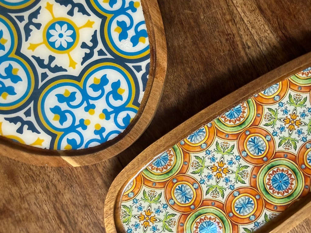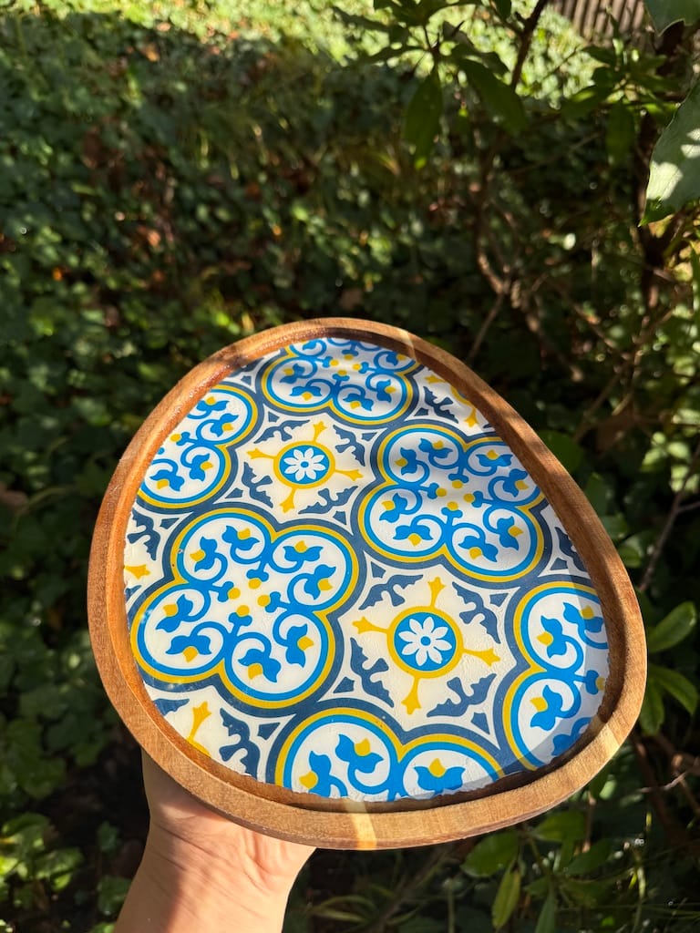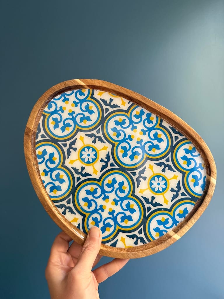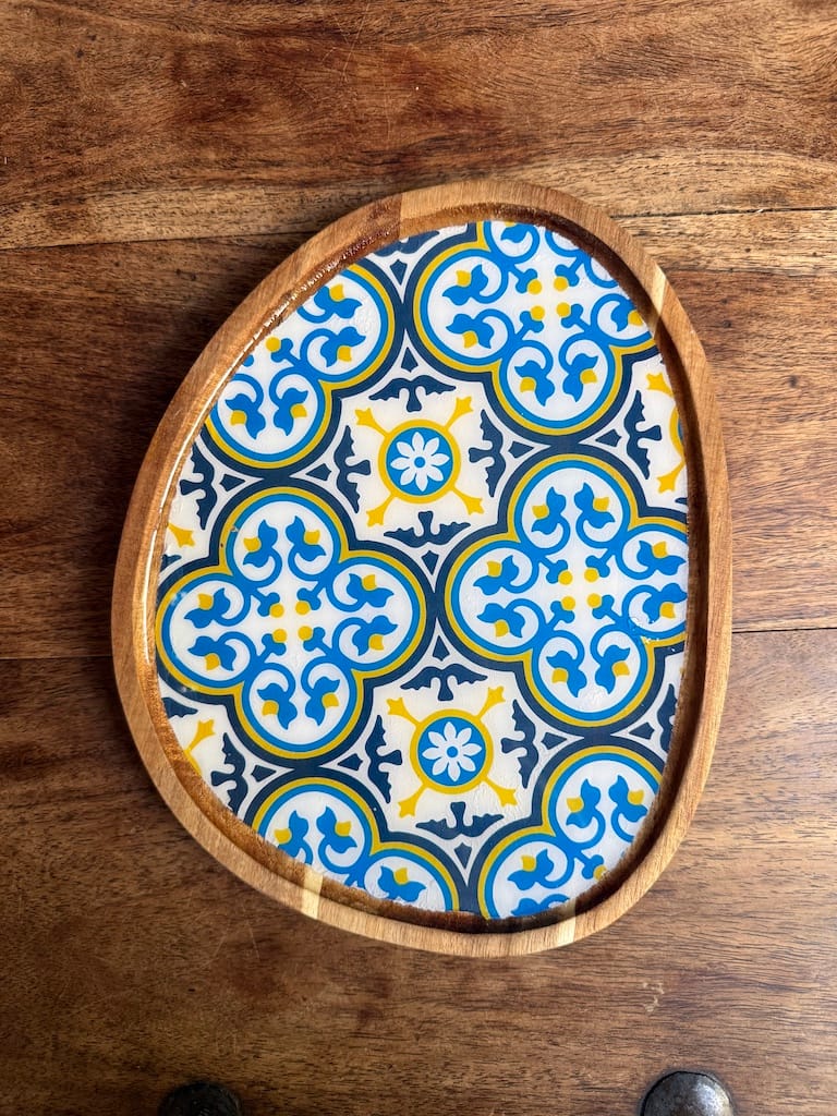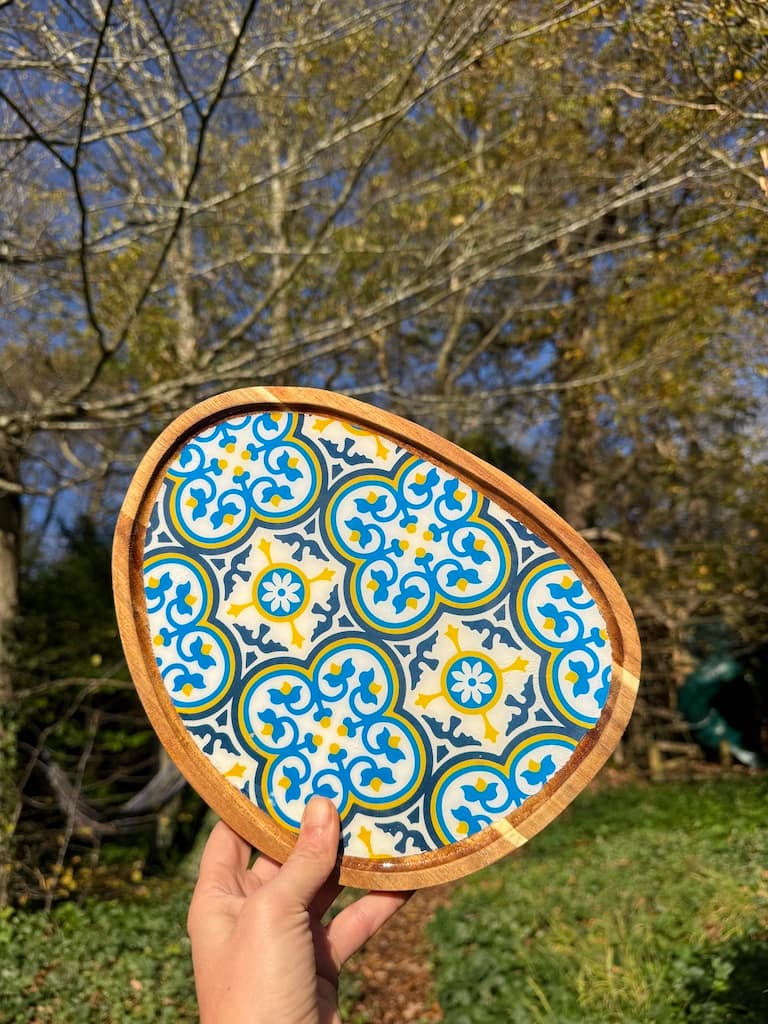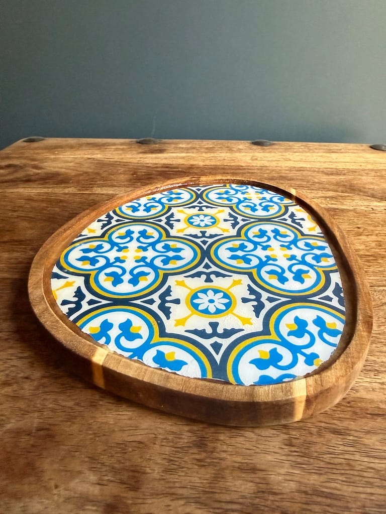 Item: Food Safe Resin Tile Pattern Wooden Tray with handles