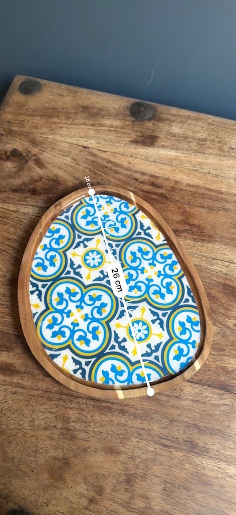 Nanna Blue painted effect Charcuterie Acacia droplet Tray 26×21 cm approx