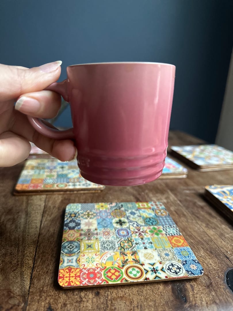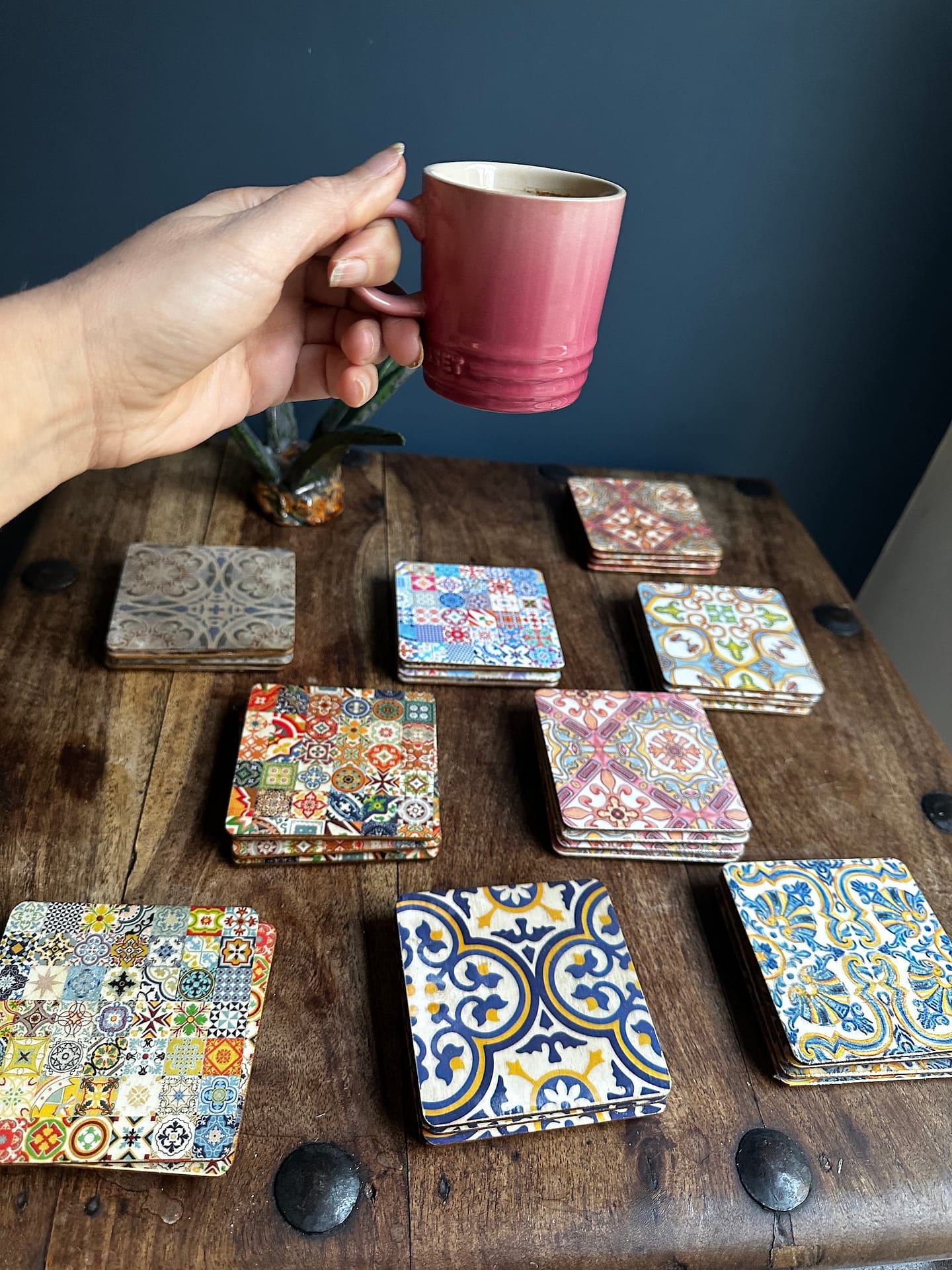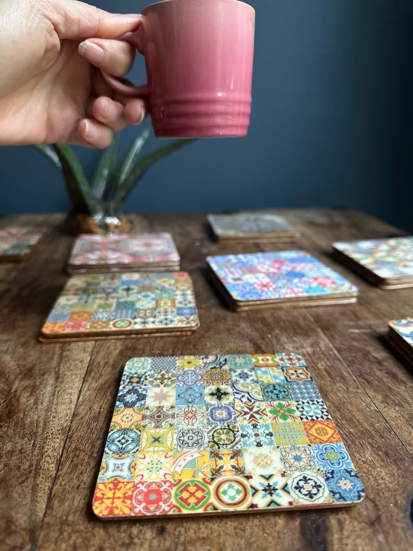 New Mix Tile Painted Effect Slim Natural Wood Square Coasters Set of 4