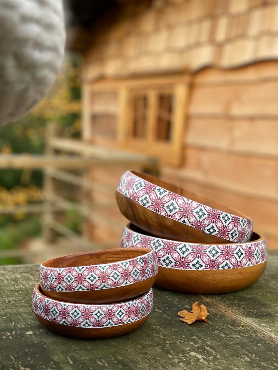 Pink Tile effect Snack Bowl Monkey Pod Salad bowl One