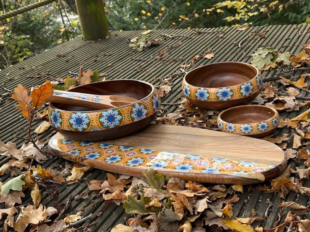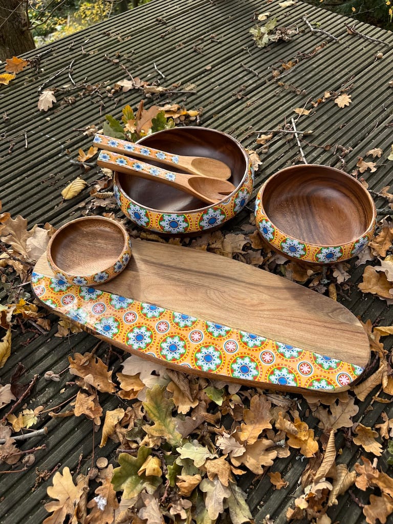 Item: Acacia Bowl (utensils and board are for illustrative purposes only)