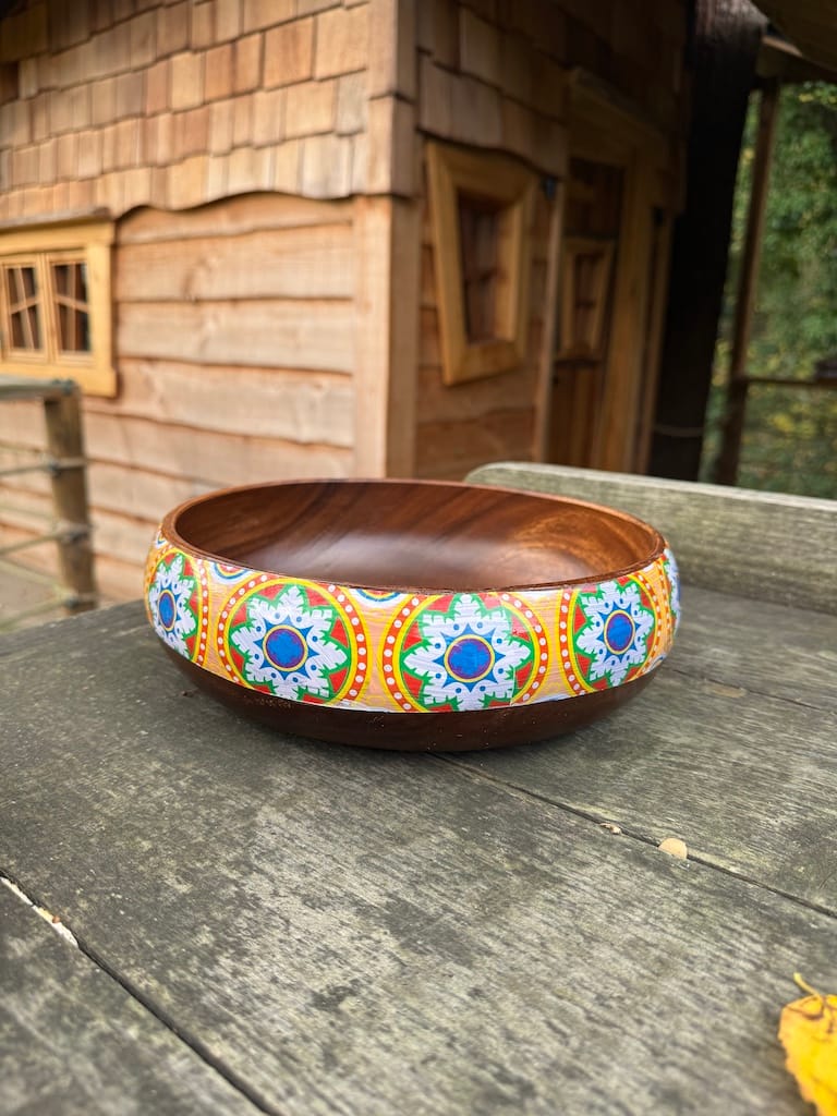 Queen Elizabeth Residence Orange Tile painted effect Acacia Wood Bowl 25x8cm