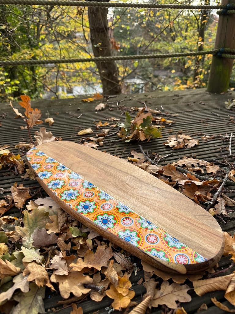 Every piece of Acacia wood has a unique look due to the variable pattern of its grain, which may be either straight or wavy, and the wide range of colours it comes in, from light amber through to dark mahogany. The wood has a rustic appeal to it, making it ideal for simple but timeless pieces that blend easily with any style preference – from shabby chic to sophisticated and elegant. The colour variations of the charcuterie boards as well as knots, and irregularities will add character to your home.