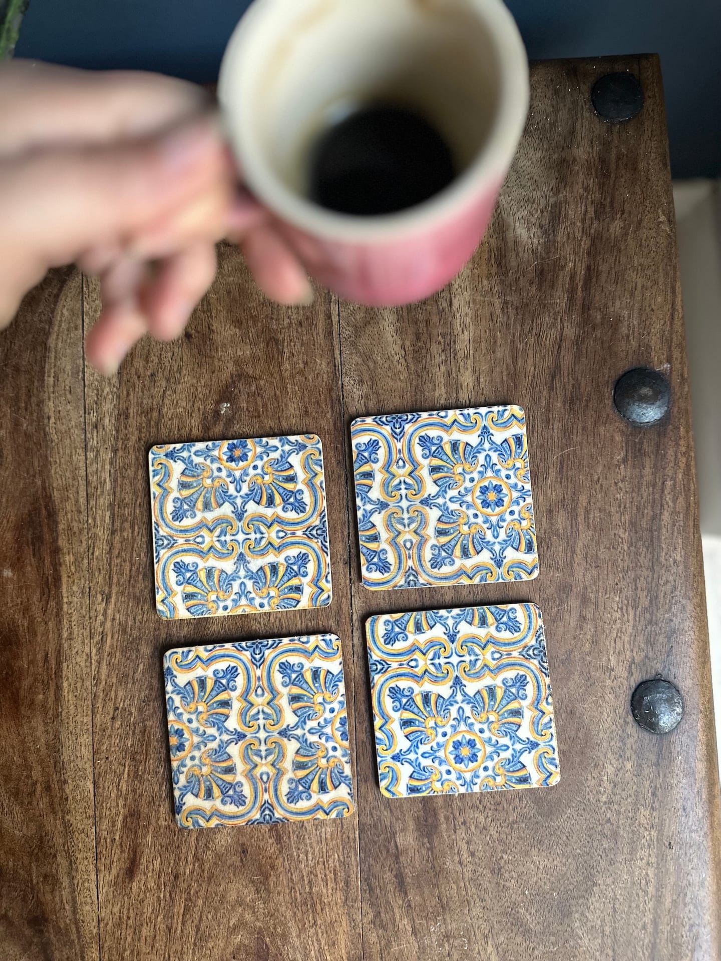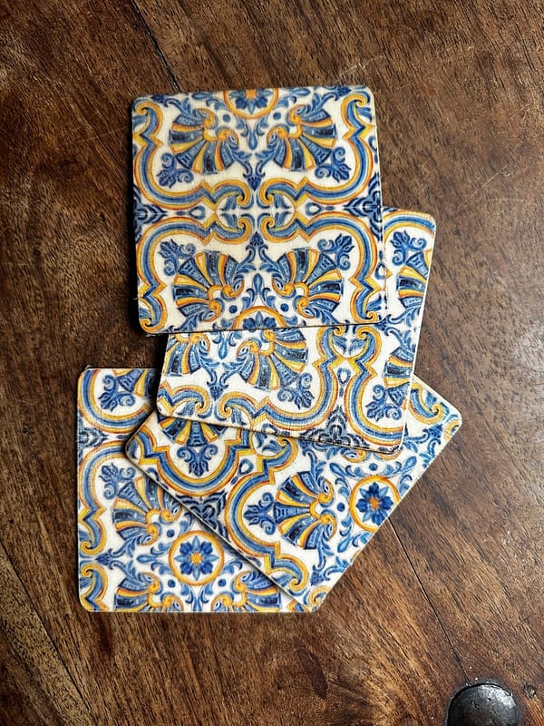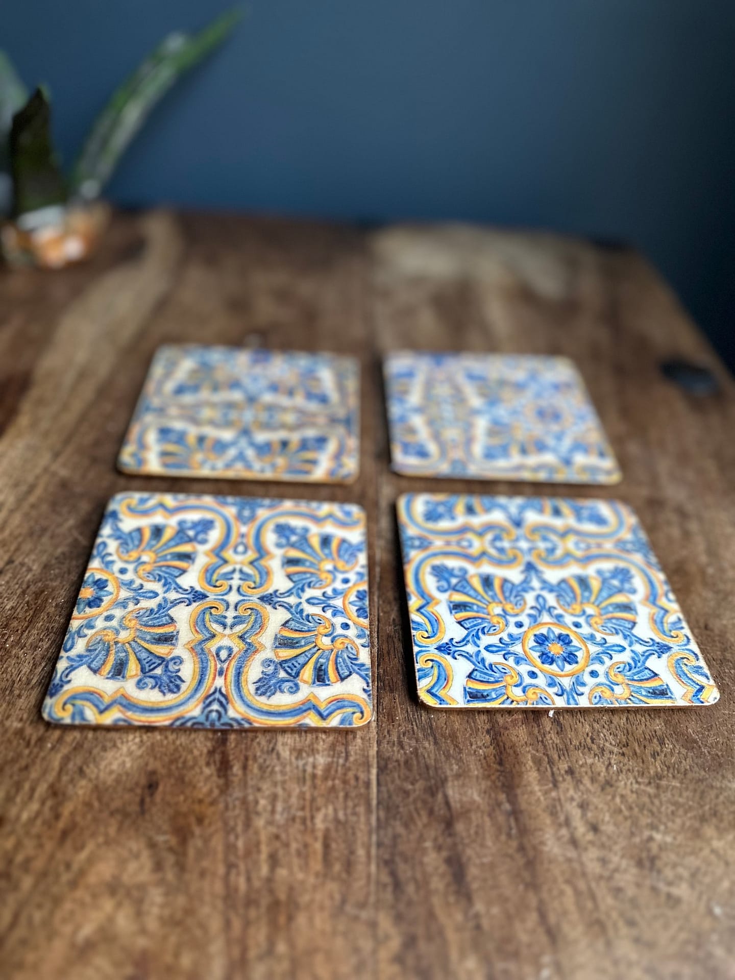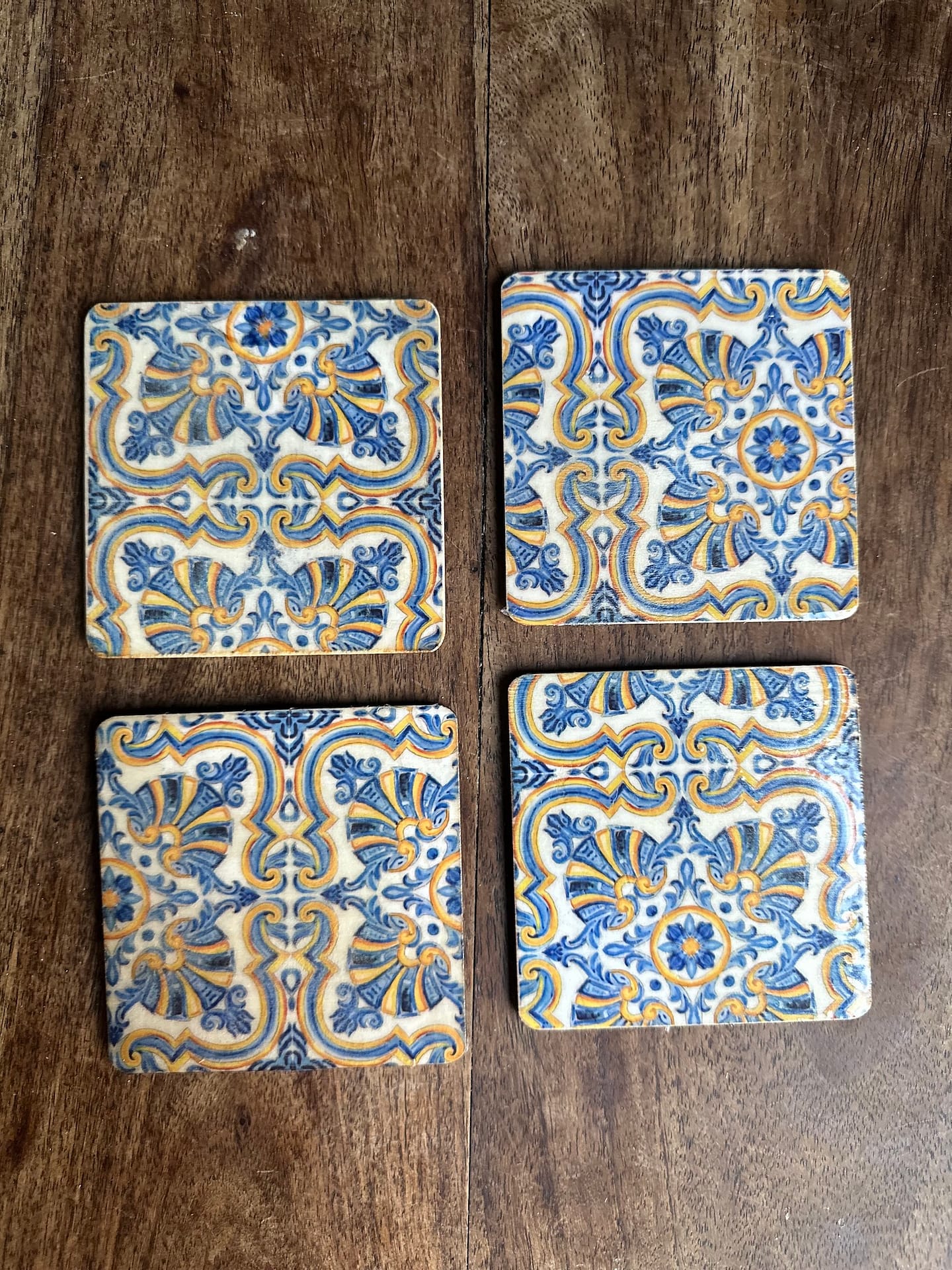 Shell Tile Painted Effect Slim Natural Wood Square Coasters Set of 4