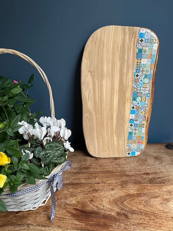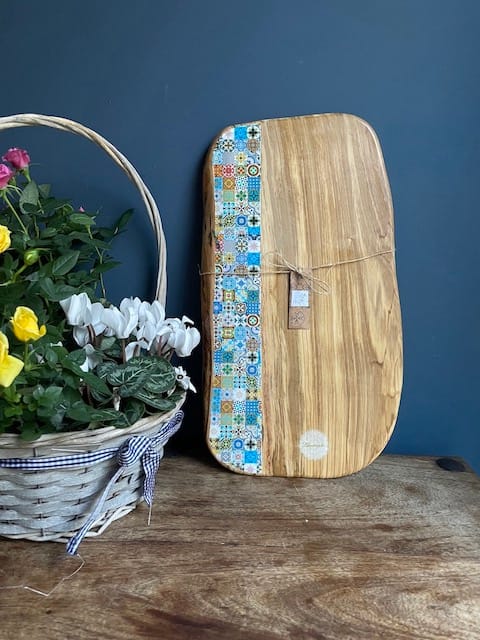 This premium quality olive wood charcuterie board has been hand designed by me and handcrafted in Malta. The beautiful grain of olive wood follows the tortuous way the trees grow. It is hard wearing and with a little care will last a lifetime. Added to this it has natural anti-bacterial properties. There is nothing to beat a really good, thick, wooden board and there is no better wood to use than olive wood. The beautiful grain of olive wood follows the tortuous way the trees grow, making each board unique. It is hard wearing and with a little care will last a lifetime.