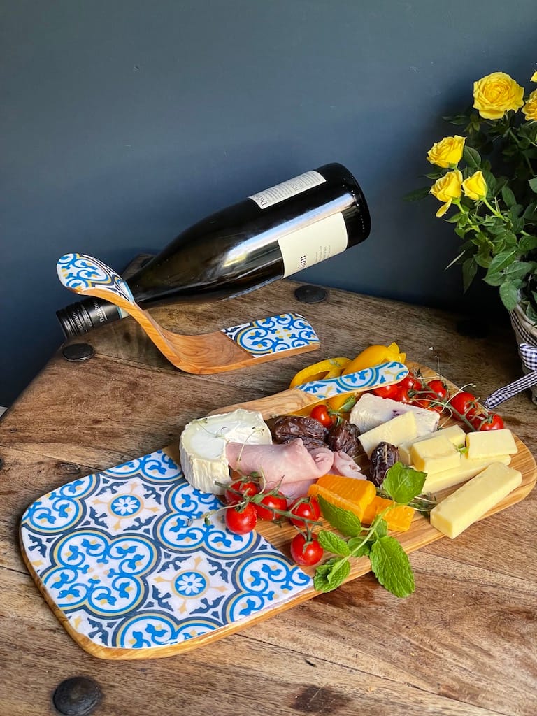 Present on this sleek, warm wood a selection of bread, cheese, antipasti, and tapas. The shape of this board is also both practical to hold and simple enough to let the natural beauty of the wood shine. The organic look of this board and the great size is perfect for displaying your bespoke design in your home as well as adding a touch of class to your decor.