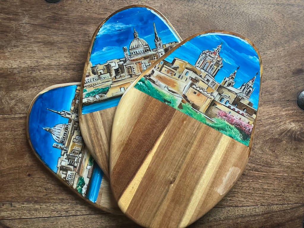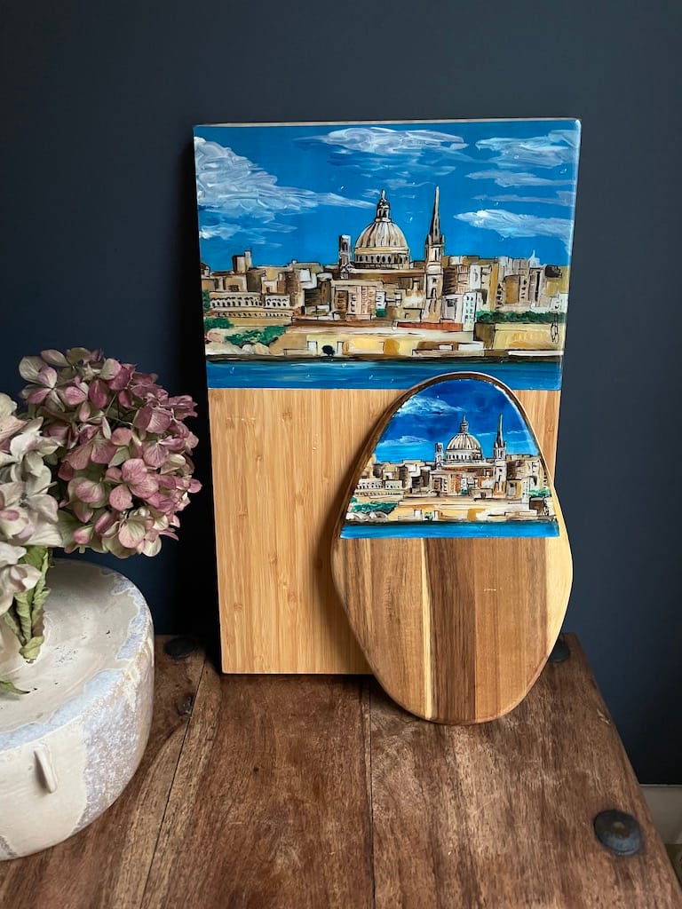 Adding a touch of contemporary style to a kitchen, unique hand painted charcuterie board in Valletta, Malta design.