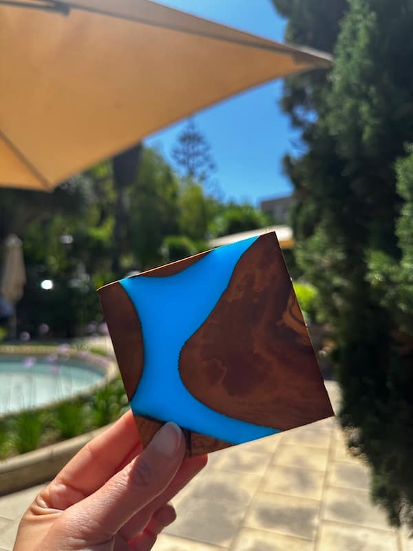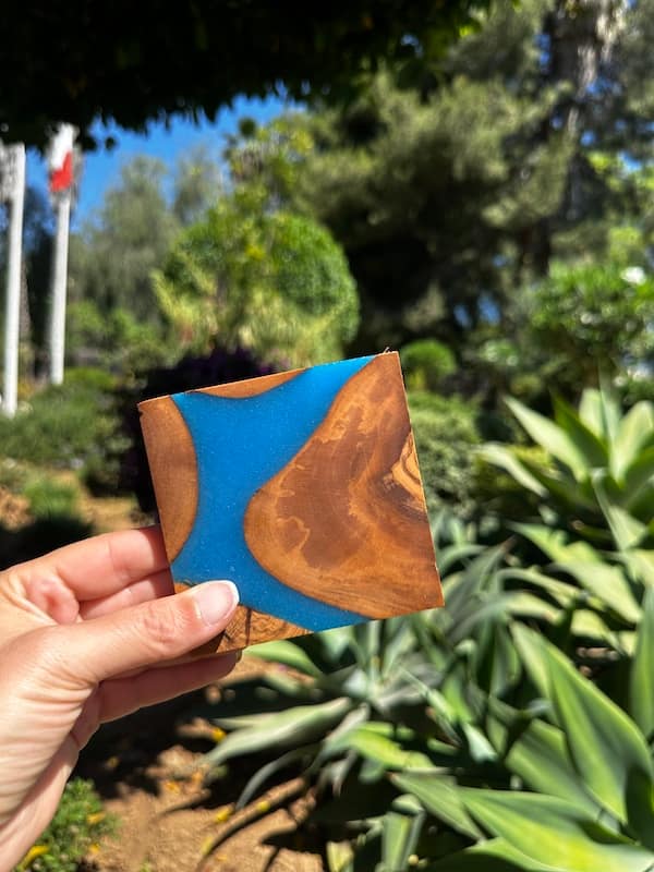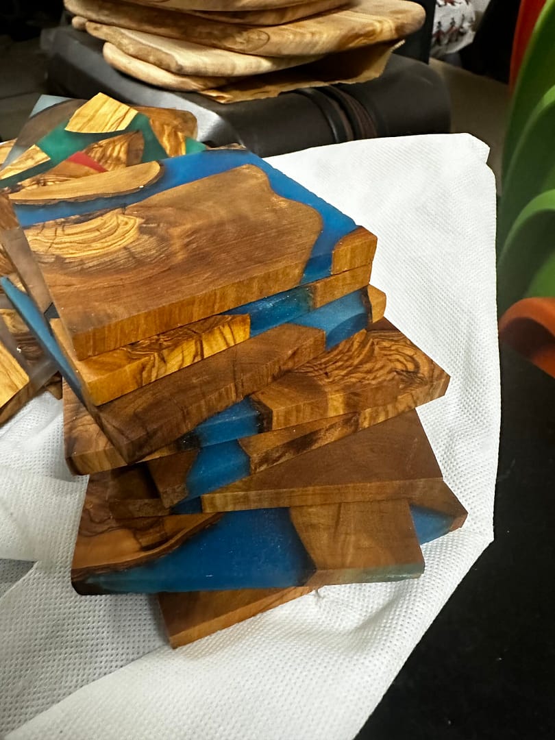 Add character to your coffee table with these four beautiful and unique hand crafter top grain olive wood wave coasters.